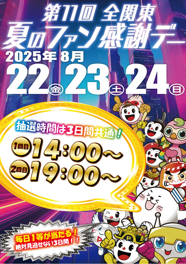 本日8月23日は🌟週末抽選入場&全関東ファン感謝祭2日目🌟