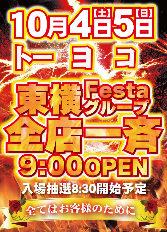 明日もトーヨコ全店合同抽選入場! 朝8時30分抽選開始👋😊