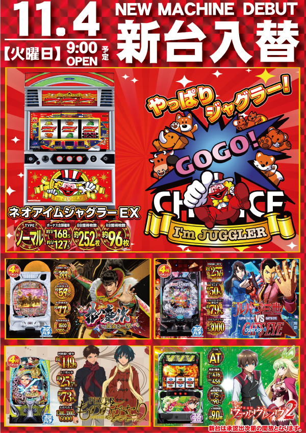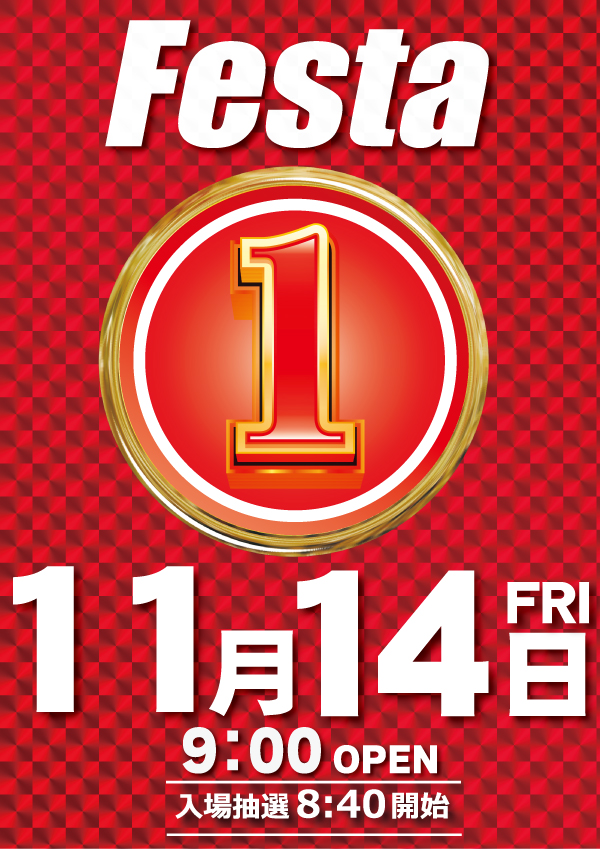 本日11月13日(木)新台5種好評稼働中!フェスタ1へGO!