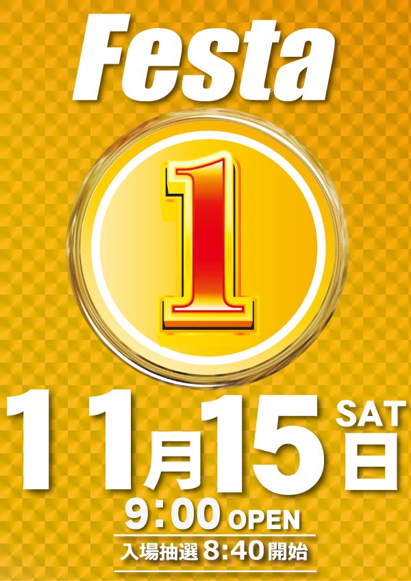 11/14~11/163日間開催!!今回も大型テレビやルンバなど豪華賞品多数あります♪是非フェスタ1へご来店ください!