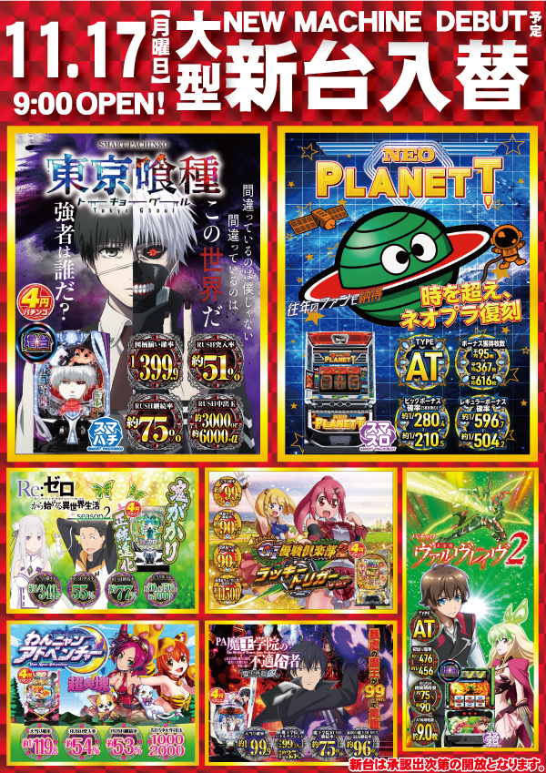 12月5日(金) 新台・厳選台好評稼働中!フェスタ1へGO!