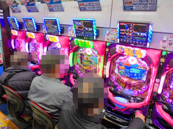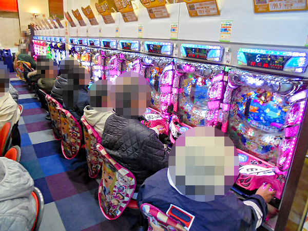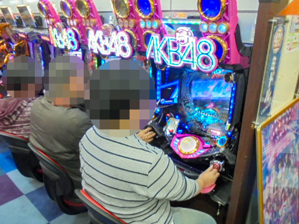 14時ごろの4円パチンコでは「CRぱちんこ AKB48-3 誇りの丘」や「CRスーパー海物語IN沖縄4 桜バージョン 新マックス319ver.」が活況で、プレイヤーの活躍をあちこちで目にしている。