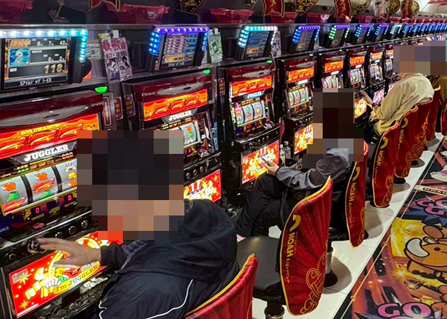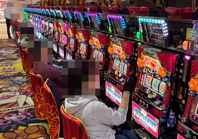 多彩な機種が支持されており、随所に遊技を楽しむプレイヤーの姿があった。