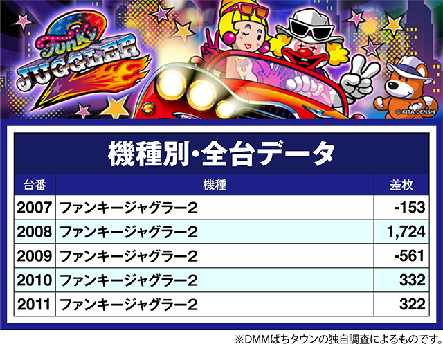 「ファンキージャグラー2」では、2008番台が1,724pt。