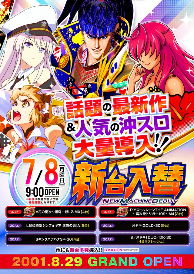 【パチンコ】並び順入場 8:30~整理券配布 【スロット】抽選入場 8:30抽選を行います。 |