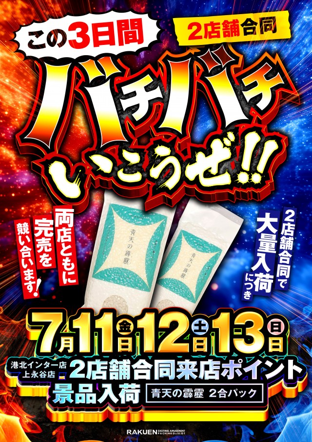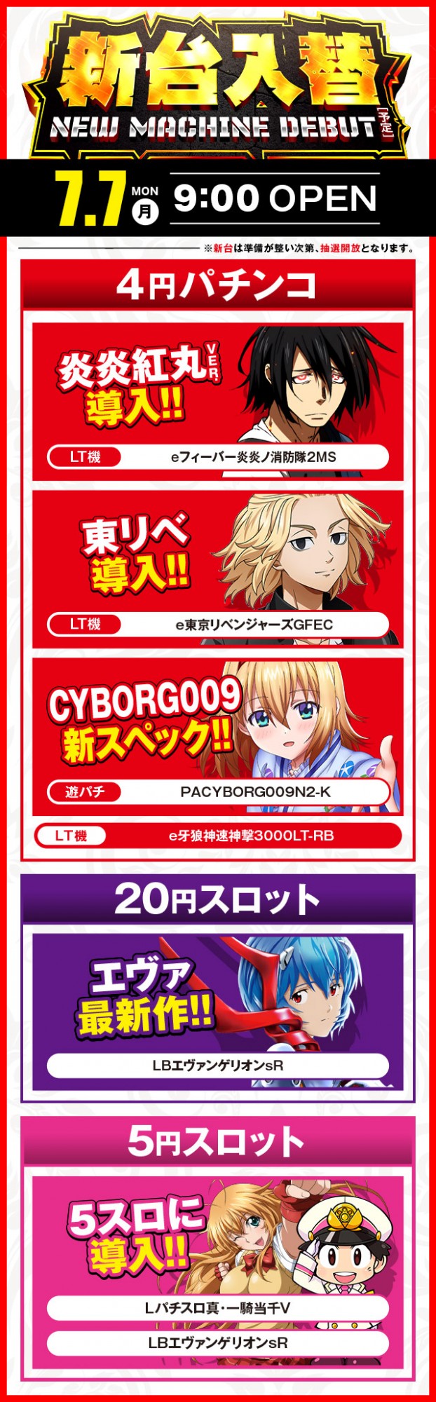 【パチンコ】並び順入場 8:30~整理券配布 【スロット】抽選入場 8:30抽選を行います。 |