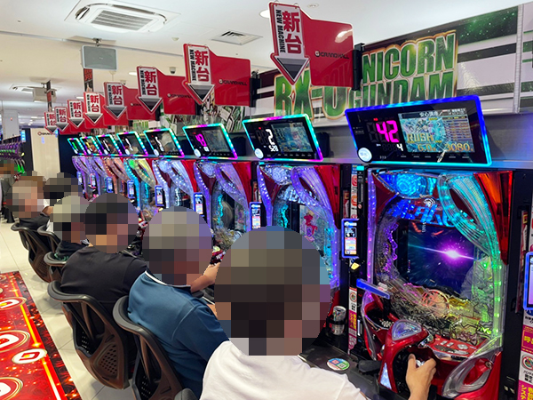 「Pフィーバー機動戦士ガンダムユニコーン 再来-白き一角獣と黒き獅子-」や「P北斗の拳 暴凶星」も高稼働。空き台が見当たらないほどの盛況ぶりで、シマ全体が明るい雰囲気に包まれていた。