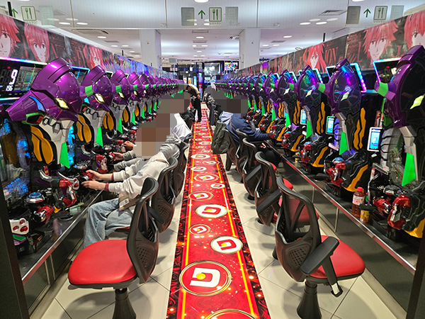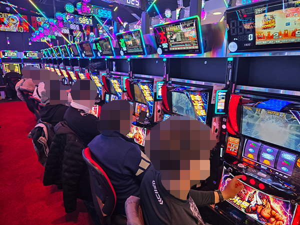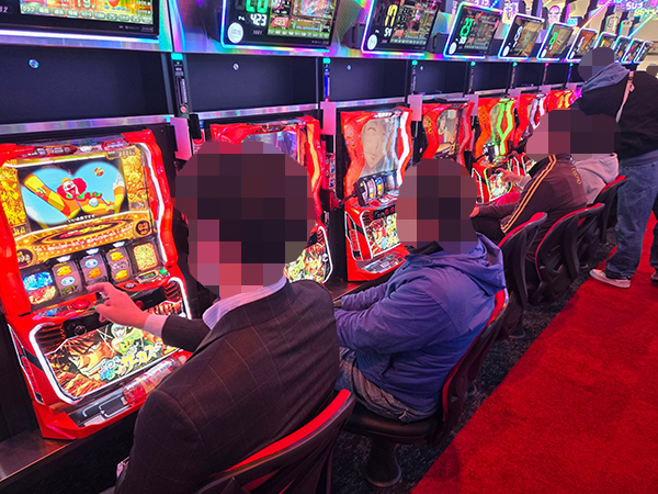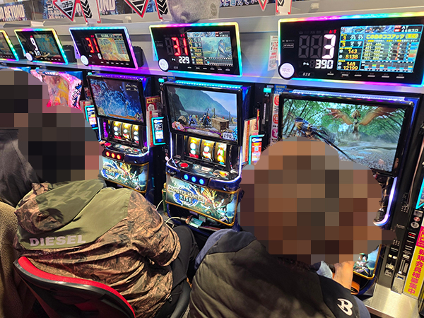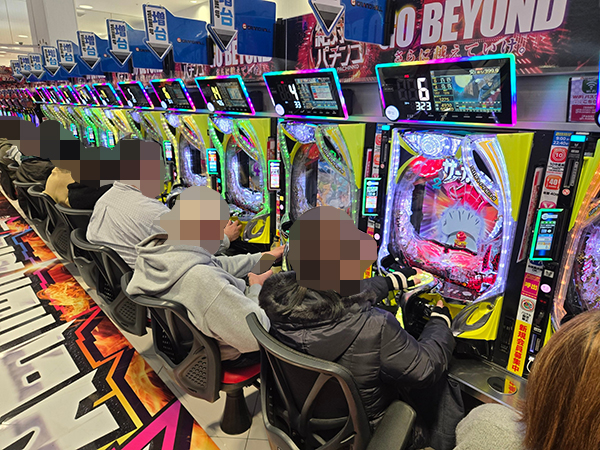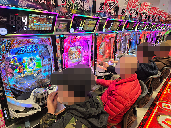 取材時は多くのプレイヤーが来店。パチンコ・パチスロともに、様々な機種が支持を得ていた。
