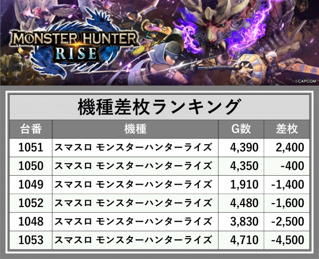 ※差枚数順に掲載しています