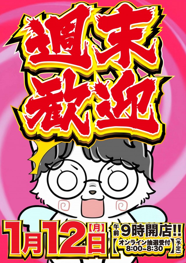 1月12日(祝)週末歓迎!3連休最終日!午前9時開店!