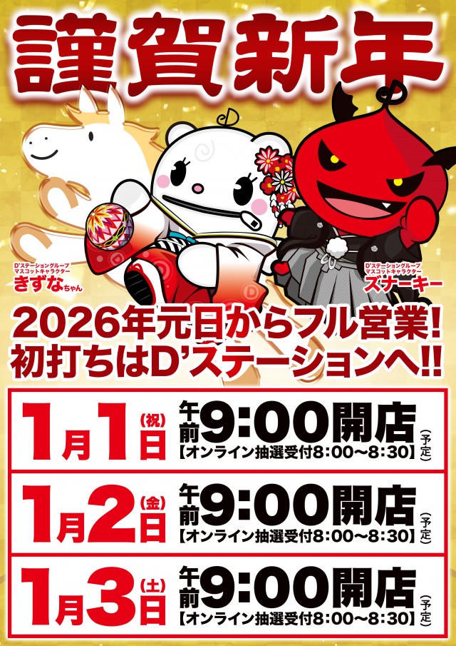 1月2日(金)🎍謹賀新年🎍初打ちはD’ステーションへ!