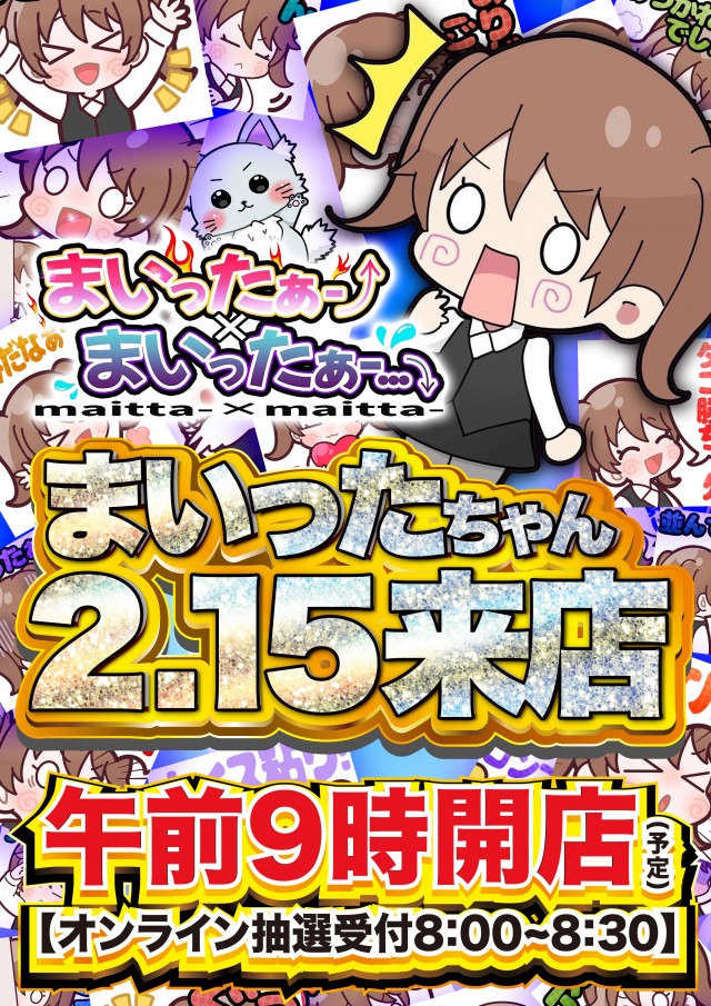 2月15日(日)まいったちゃん来店×ファン感!午前9時開店!