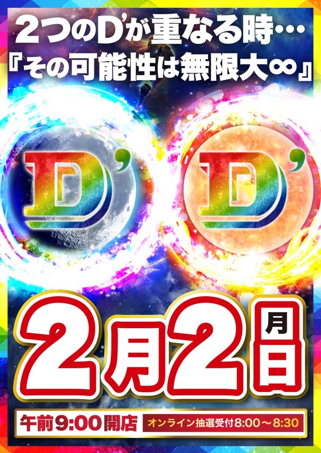 2月2日(月)∞無限大×新台入替∞午前9時開店!
