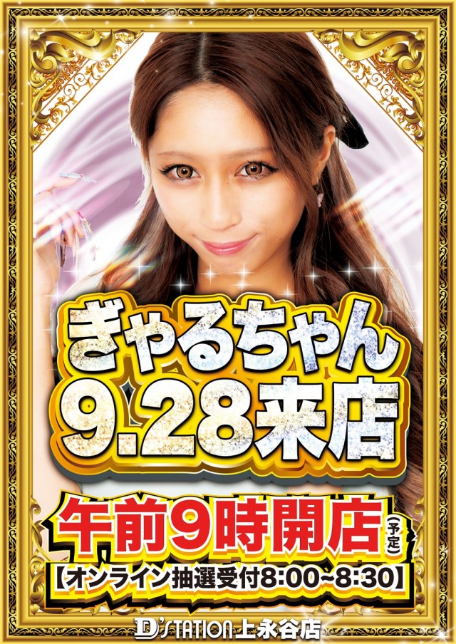 9月28日(日)ぎゃるちゃん来店!午前9時開店!