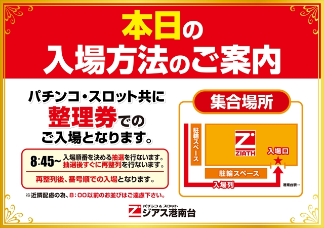 本日は抽選入場【入場抽選8:45~】是非ご来店下さい!