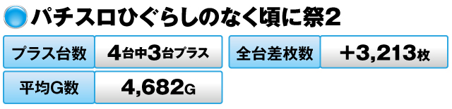 4台中3台がプラスで、全台差枚数は+3,213枚だった。
