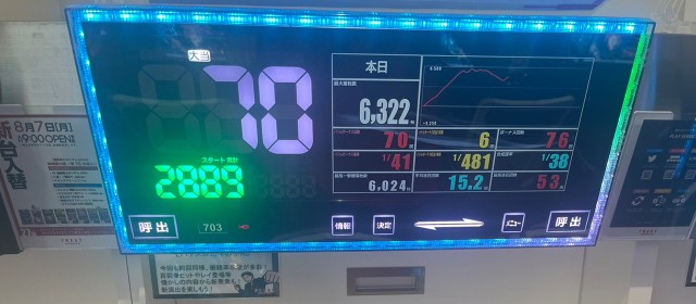 後述する好調2機種以外では、なんといっても+万枚達成目前に迫った『L主役は銭形4』がこの日トップの出玉を達成した。その他『アイムジャグラーEX』の好調ぶりも目立っていた。