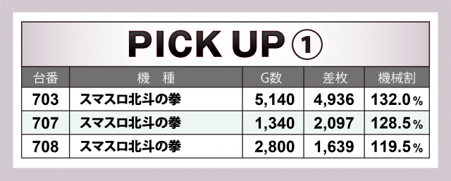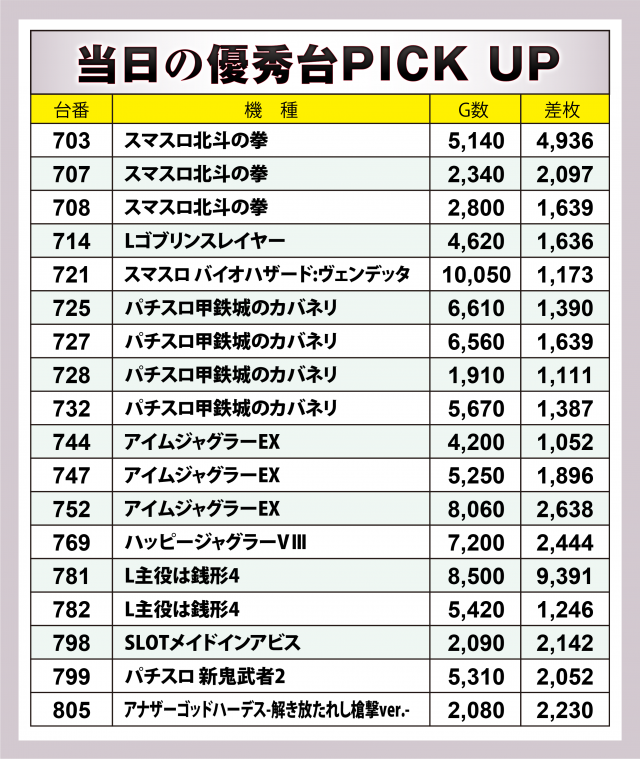 続いては好調3機種計7台にスポットを当てよう。その全てが4桁のプラスを計上した。