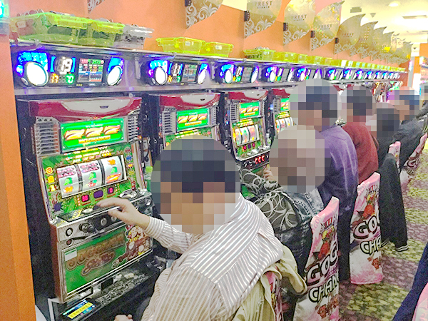 20円パチスロを見てみると、「ジャグラーガールズ」や「ハッピージャグラーVII」、「マイジャグラーⅢ」などのジャグラーシリーズで、華麗なパフォーマンスを披露するプレイヤーたちを確認。各人とも納得の展開に笑みを浮かべていた。