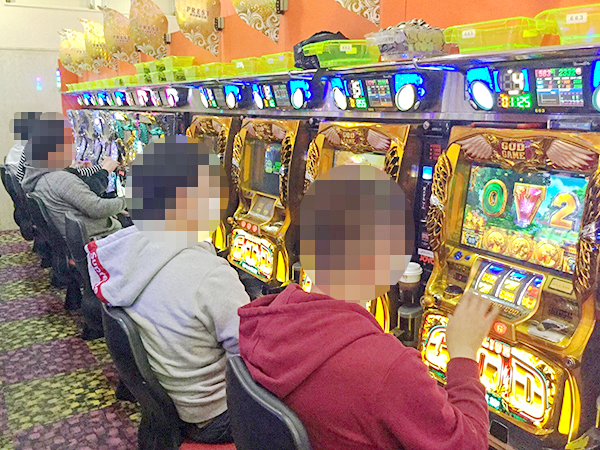「ミリオンゴッド-神々の凱旋-」や「パチスロ 超 GANTZ」などでも、機種の醍醐味をじっくりと味わうプレイヤーと遭遇。あちこちで活気あるシーンを目にしている。