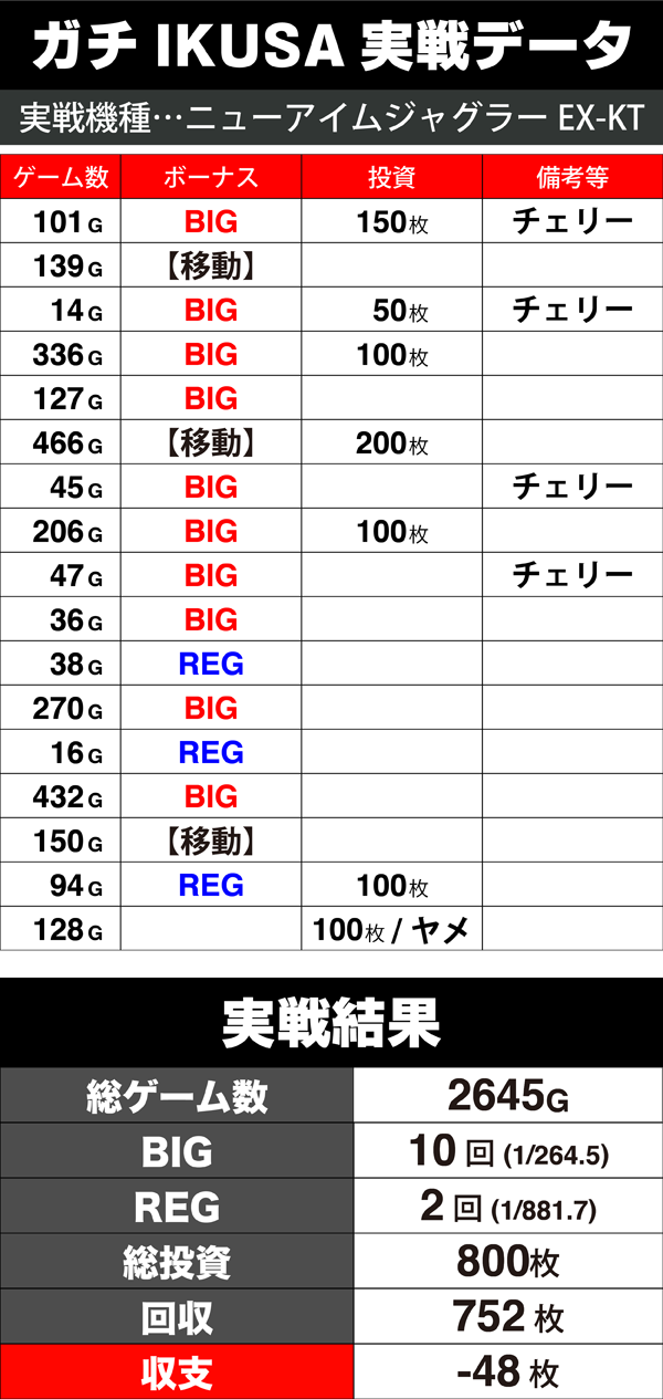 確実な勝利を掴むために選んだ機種は、ボーナスタイプの「ニューアイムジャグラーEX-KT」。