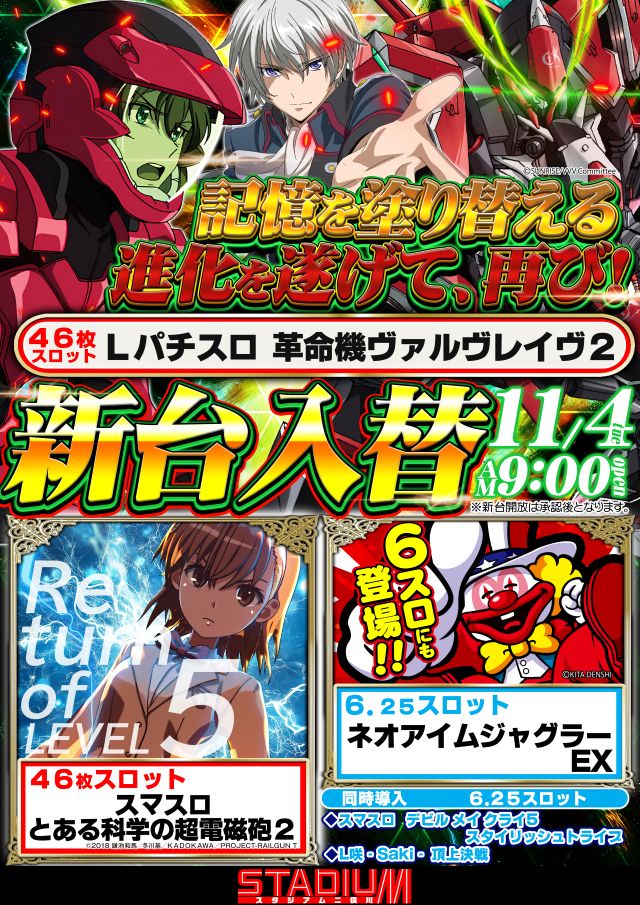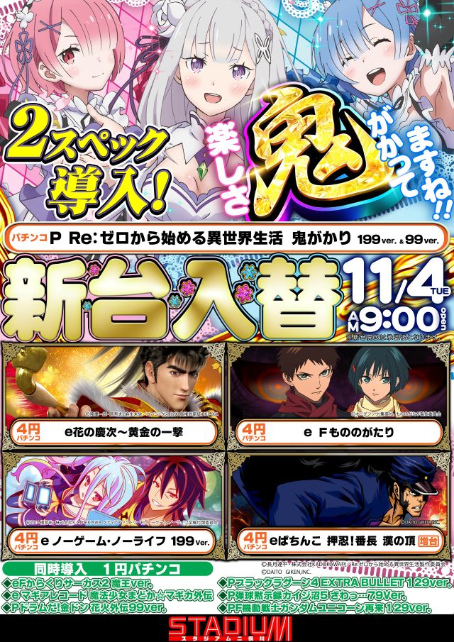 11月17日【月】新台入替でございます