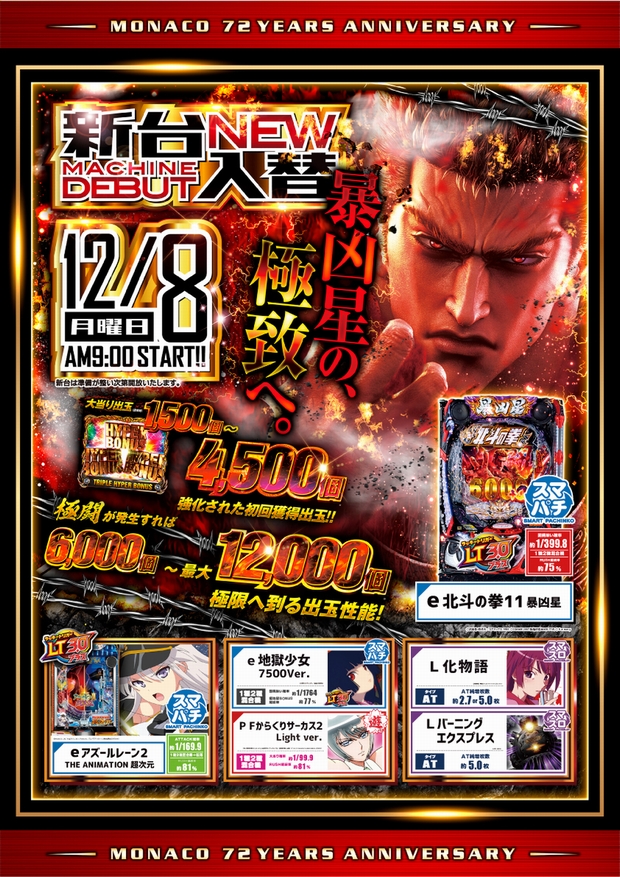 明日☆新台入替☆e北斗の拳11暴凶星&eアズールレーン2他!