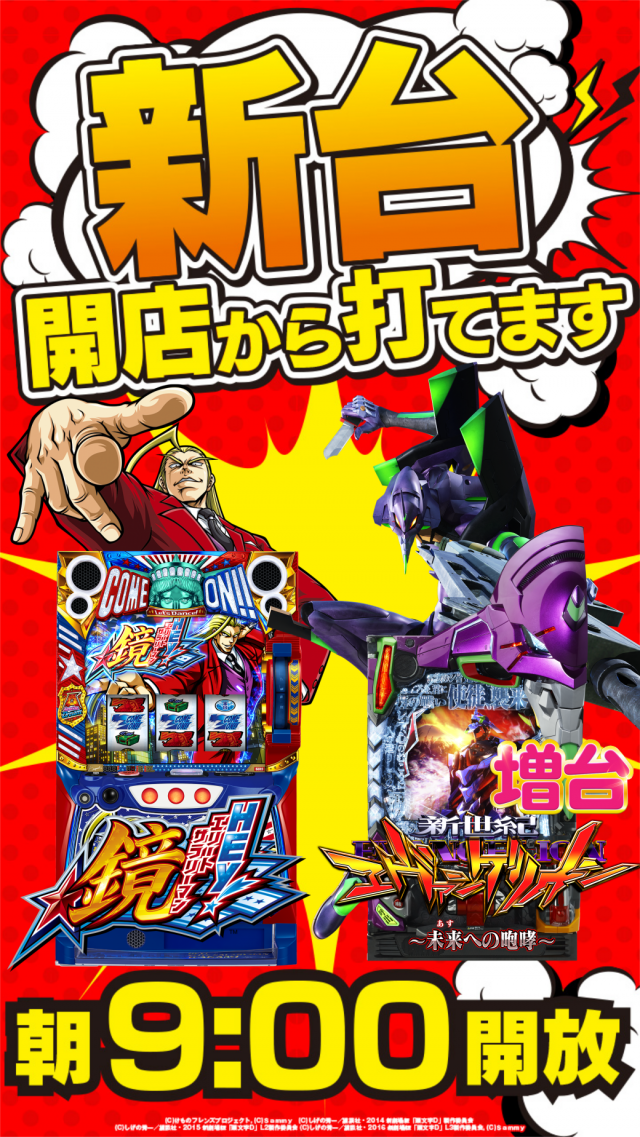 本日新台入替 ついにスマスロ鏡導入!エヴァ増台&沖海5増台!