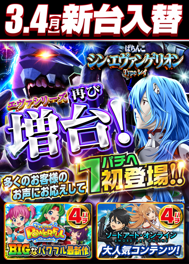 本日新台入替!1円にシン・エヴァ登場!他にも新台導入!!