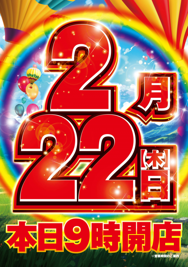 本日2月22日(木)新台&オススメ機種のご案内!🌈