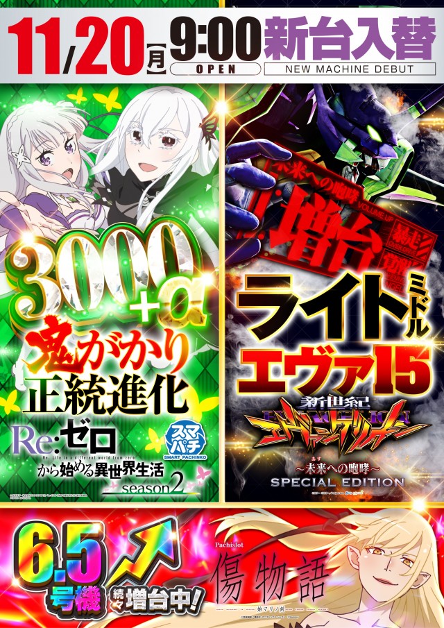 🌈本日9時開店!エヴァ&リゼロ&6.5号機 オススメ!🌈
