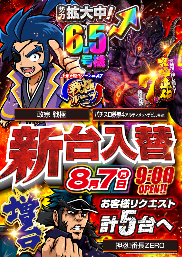 本日『跳戦!!』8月7日(月)ジャパン全店フルオープン!!
