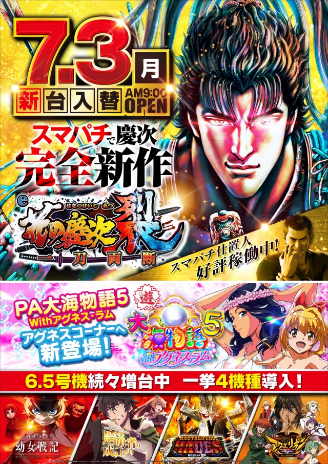真・花の慶次全3機種好評稼働中!次回スマパチ慶次導入!!