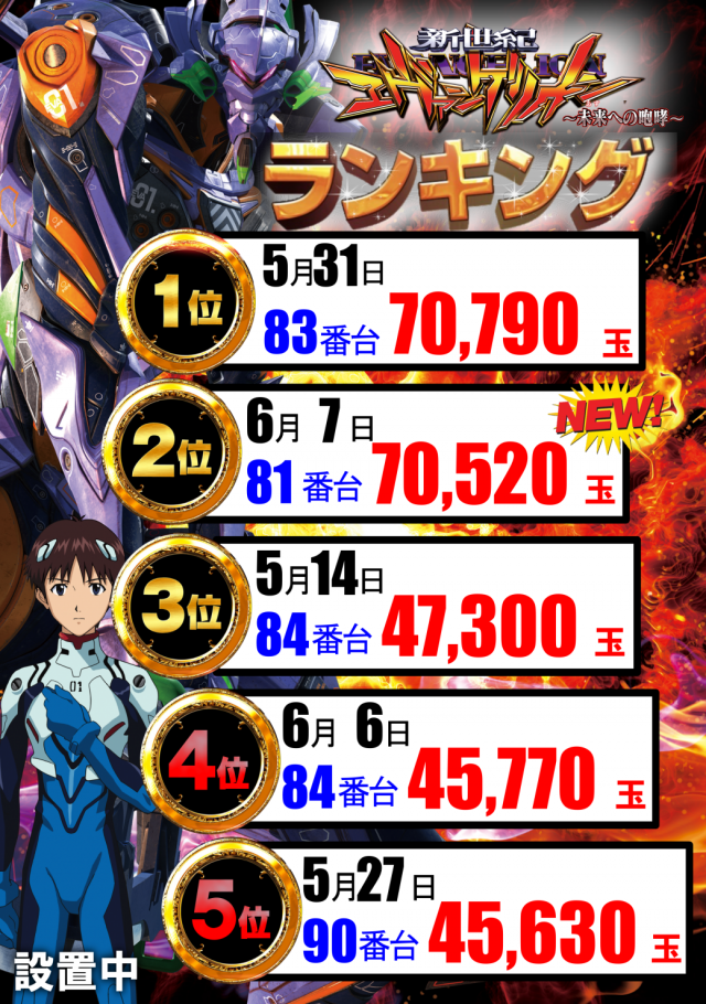 🌈またまた連続エヴァランクイン!!本日4パチランキング更新🌈