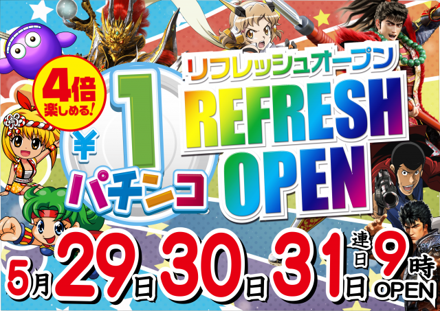 ジャグラー好評稼働中!3日連続1円リフレッシュオープン!