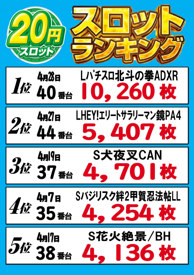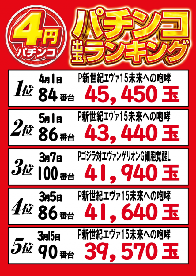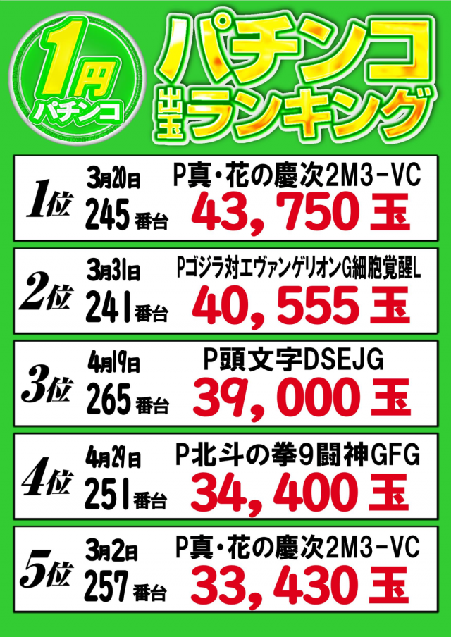 ▼出玉ランキング▼