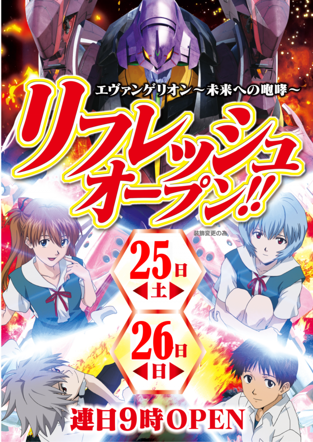 本日エヴァリフレッシュ!エヴァ未来 全6台設置中!さ、いこう