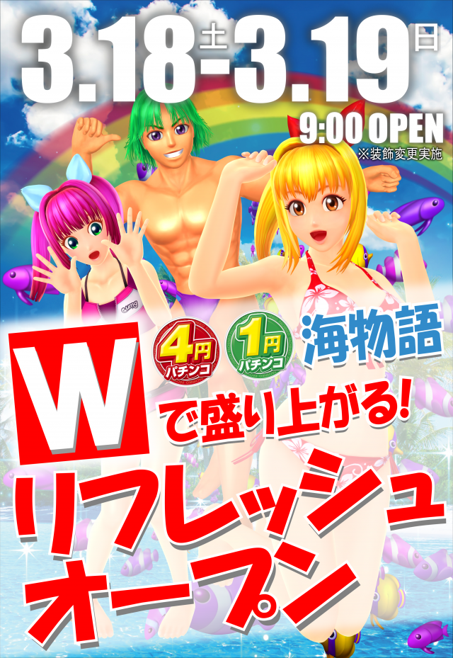 本日4円&1円海物語Wリフレッシュ!!Wで盛り上がる!!