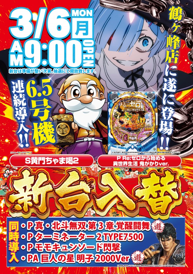 本日新台入替 遂に鶴ヶ峰店にリゼロ新登場!