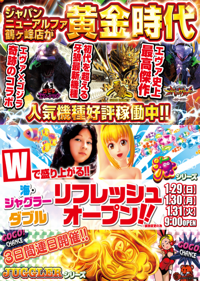 人気機種好評稼働中!リフレッシュオープン最終日!