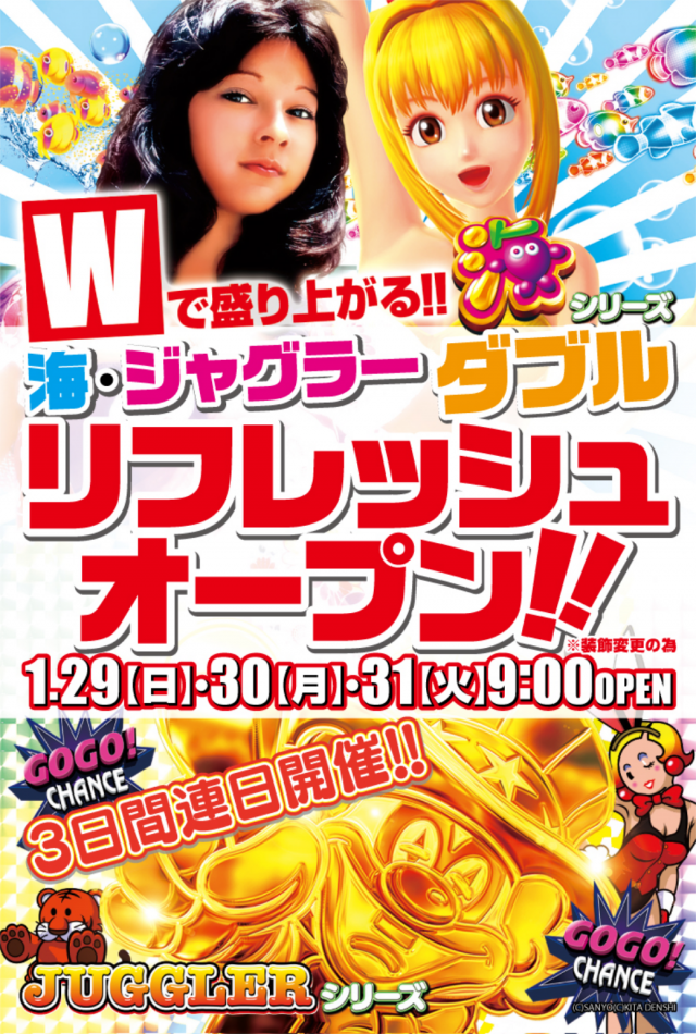 本日海物語&ジャグラーコーナーリフレッシュオープン♪