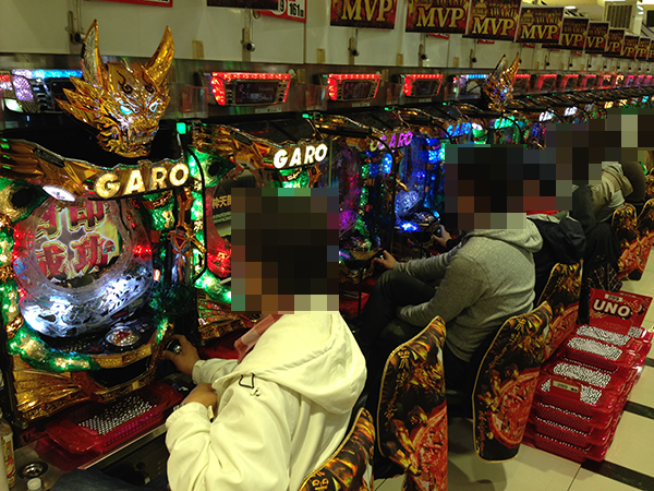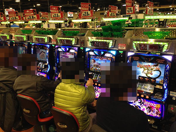 15時を過ぎた頃になると、4円パチンコでは「CRフィーバー機動戦士ガンダムLAST SHOOTING」や「CR逆転裁判」といった新台が満席状態。満面の笑みを浮かべている人もおり、大盛況となっていた。