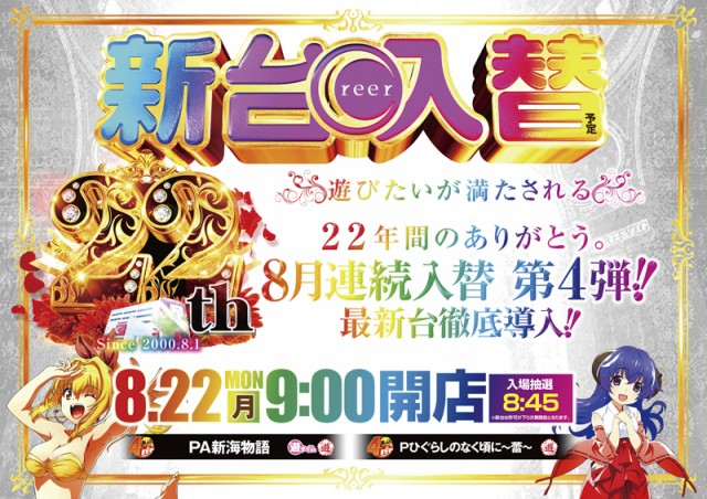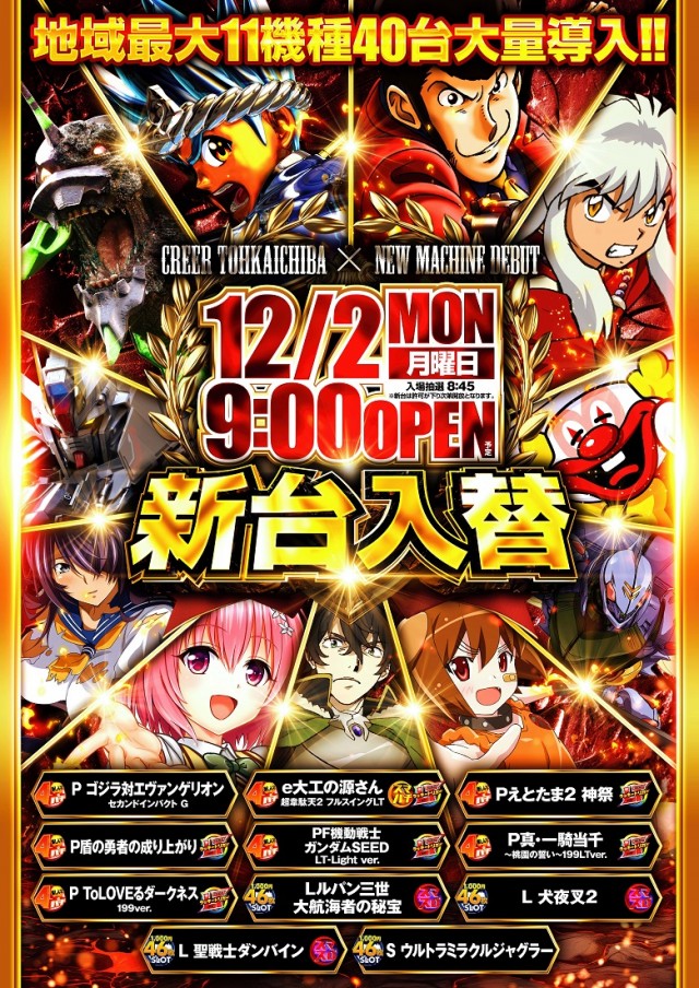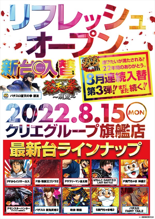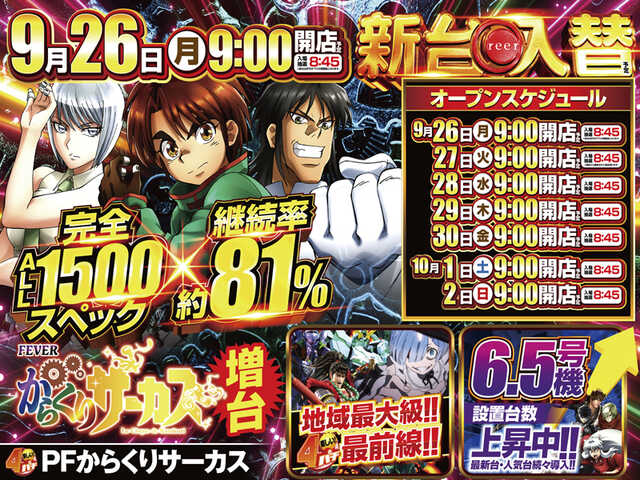 本日リフレッシュオープン!全館9時開店・入場抽選8:45♪
