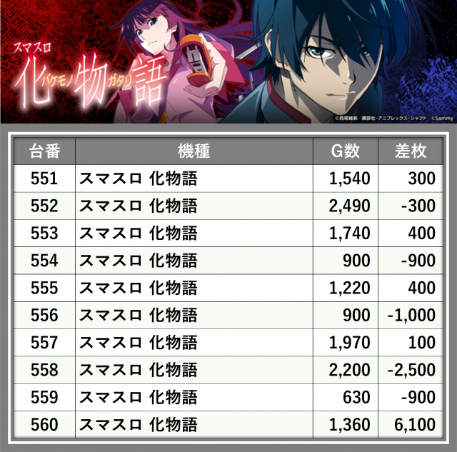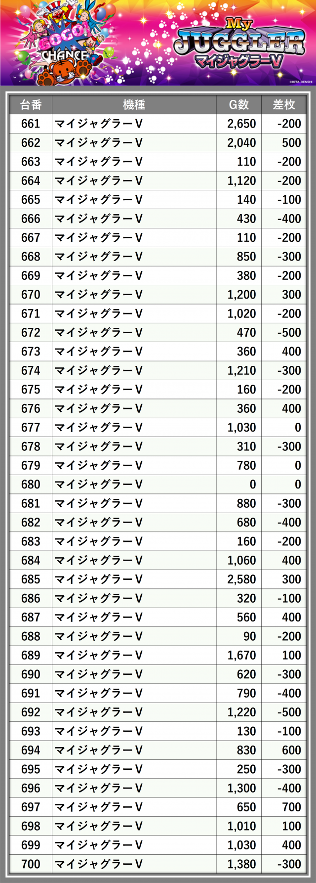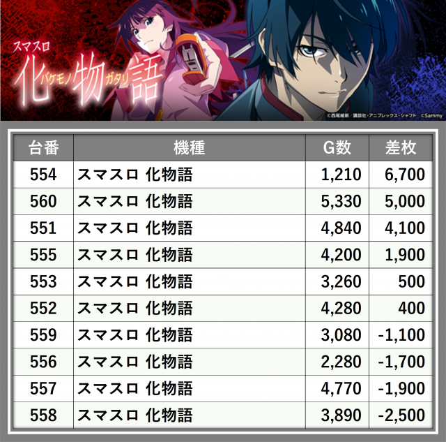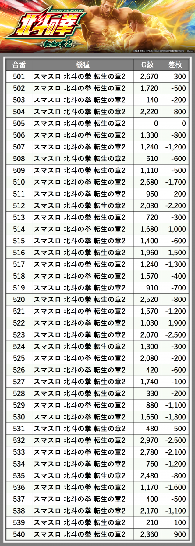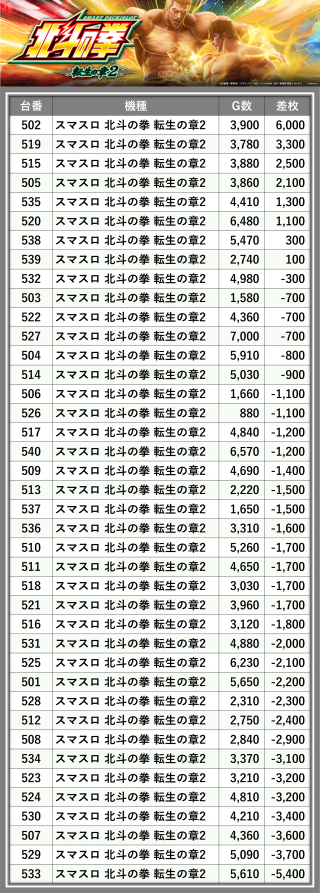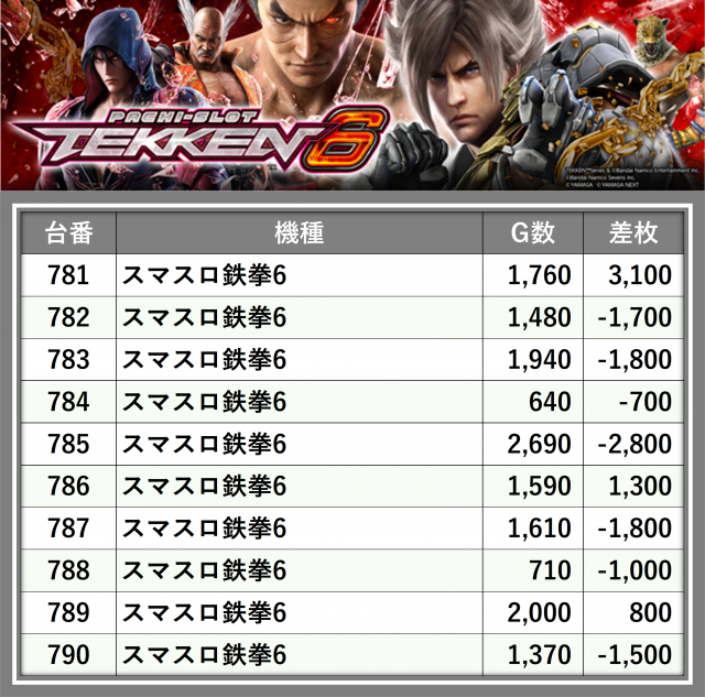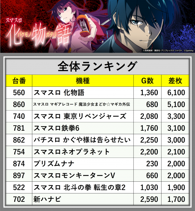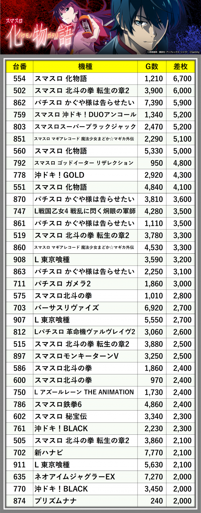 ※差枚数順に掲載しています