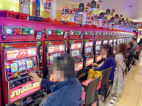 「ゴーゴージャグラー2」や「マイジャグラーⅢ」、「ファンキージャグラー」などのジャグラーシリーズでは、理想的な展開を迎えたプレイヤーが見られ、実に微笑ましい光景が広がっていた。