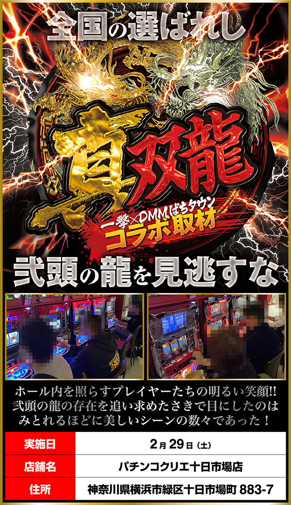 「パチンコクリエ十日市場店」にて、うれしそうに遊技をおこなうプレイヤーたちと出会えた「真双龍」であった。