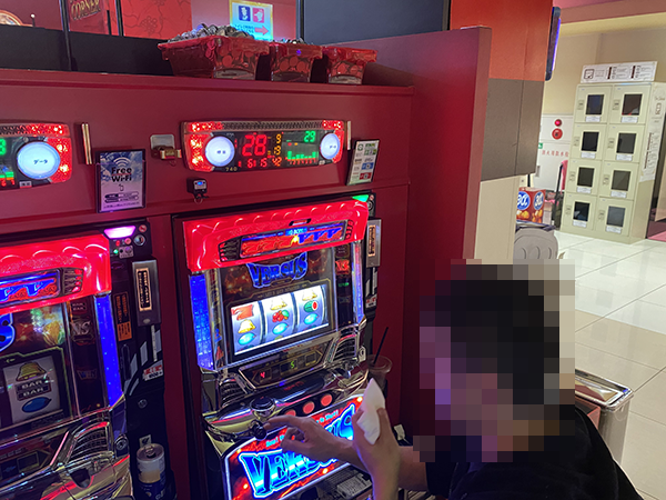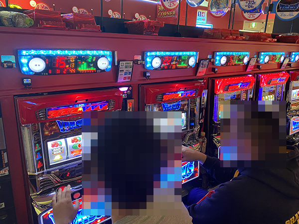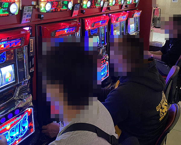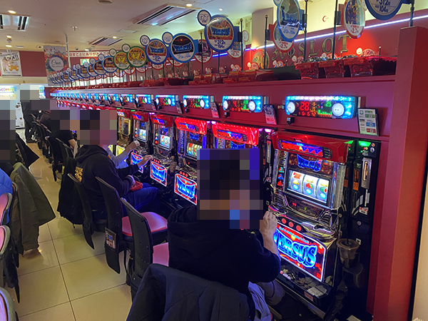 店内に目をむけると、パチンコとパチスロのさまざまな場所に遊技を楽しんでいる姿があった。