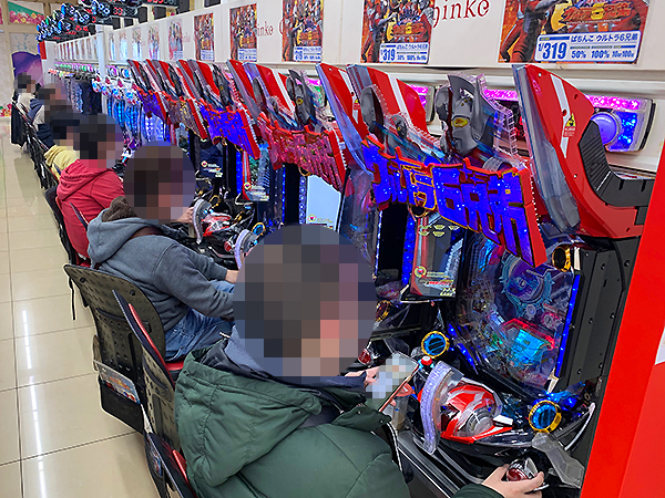 14時ごろの4円パチンコを見渡すと「ぱちんこCR真・北斗無双」や「ぱちんこ ウルトラ6兄弟」の支持が厚い。プレイヤーの活躍を各所で目にしている。