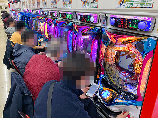 店内では貸し玉料金を問わず様々な機種で、心ゆくまで楽しむプレイヤーの姿が見られた。