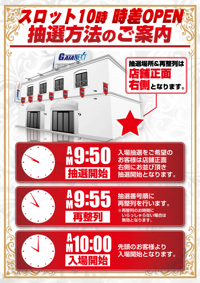 スロット10時時差オープン!! 9時50分抽選開始!!